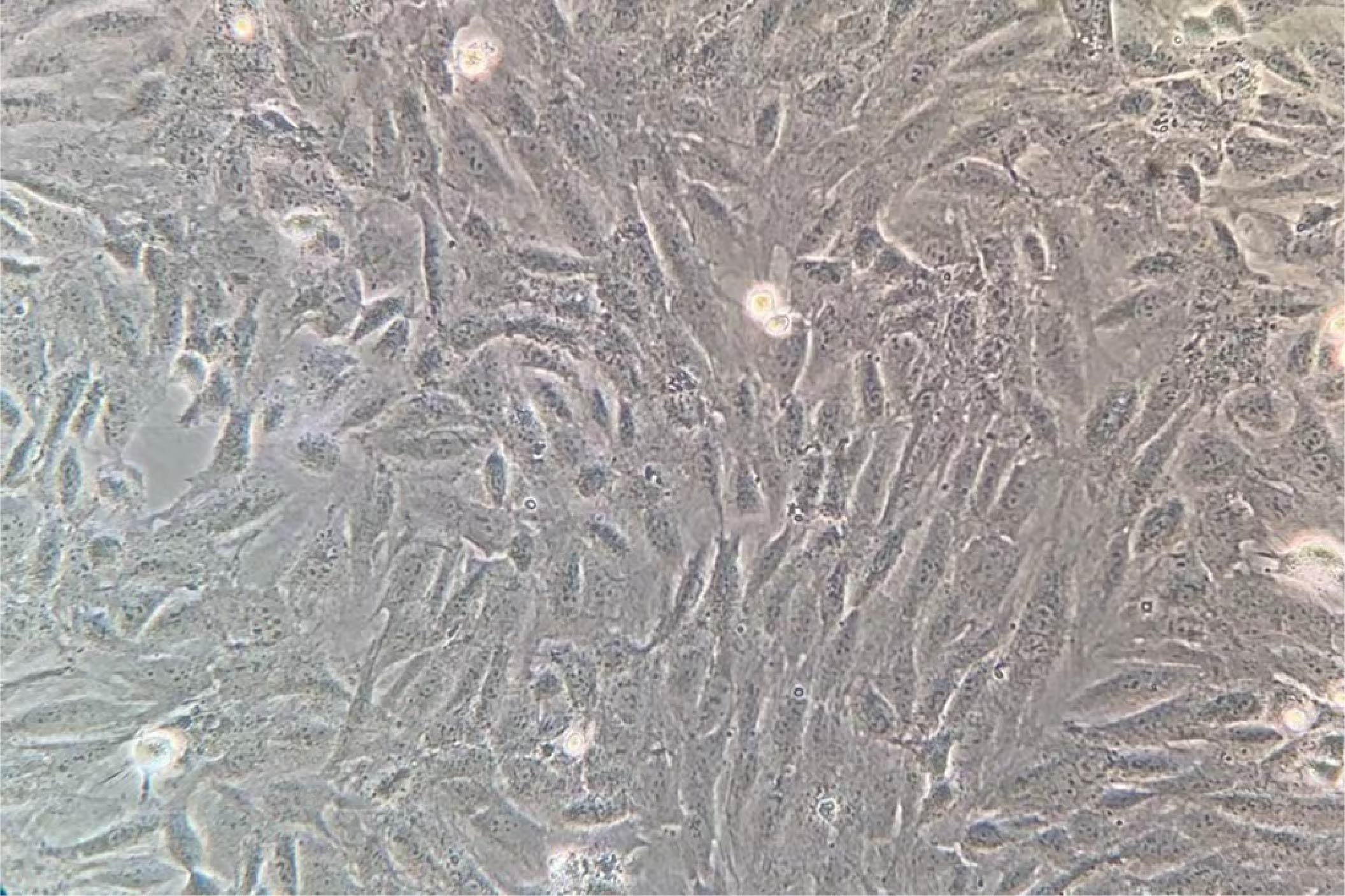該細(xì)胞是一株由Kimes·B和Brandt·B從BD1X大鼠胚胎心臟組織的克隆細(xì)胞株亞克隆得到的細(xì)胞株; H9c2(2-1)細(xì) 胞 表現(xiàn)出許多骨骼肌的特性。 H9c2(2-1)細(xì)胞中的成肌細(xì)胞能融合形成多核的肌管 ,并對乙酰膽堿的刺激發(fā)生反應(yīng) 。如 果培養(yǎng)基中的血清濃度下降到1% ,H9c2(2-1)細(xì)胞融合發(fā)生得很快。 |