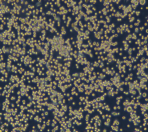 該細(xì)胞來源于C57BL/6小鼠卵巢組織自發(fā)的網(wǎng)織細(xì)胞肉瘤,經(jīng)細(xì)胞形態(tài)和功能鑒定后為巨噬細(xì)胞來源:該細(xì)胞具有吞噬活性;表達(dá)Fc受體,與綿羊紅細(xì)胞形成玫瑰花環(huán);對51Cr標(biāo)記的紅細(xì)胞具有抗體依賴的細(xì)胞毒反應(yīng);對同源小鼠腫瘤細(xì)胞(B16-F1)有巨噬細(xì)胞樣的細(xì)胞毒作用,且不需要LPS的激活;沒有NK細(xì)胞的活性;具有同小鼠腹腔巨噬細(xì)胞相當(dāng)?shù)娜芫?、非特異性酯酶和磷酸酶的活性;超微結(jié)構(gòu)顯示該細(xì)胞內(nèi)有吞噬小泡,缺乏緊密連接,這些特點都符合巨噬細(xì)胞的形態(tài)特征。核型分析顯示該細(xì)胞為亞二倍體,因羅伯遜易位,>80%的染色體。 |